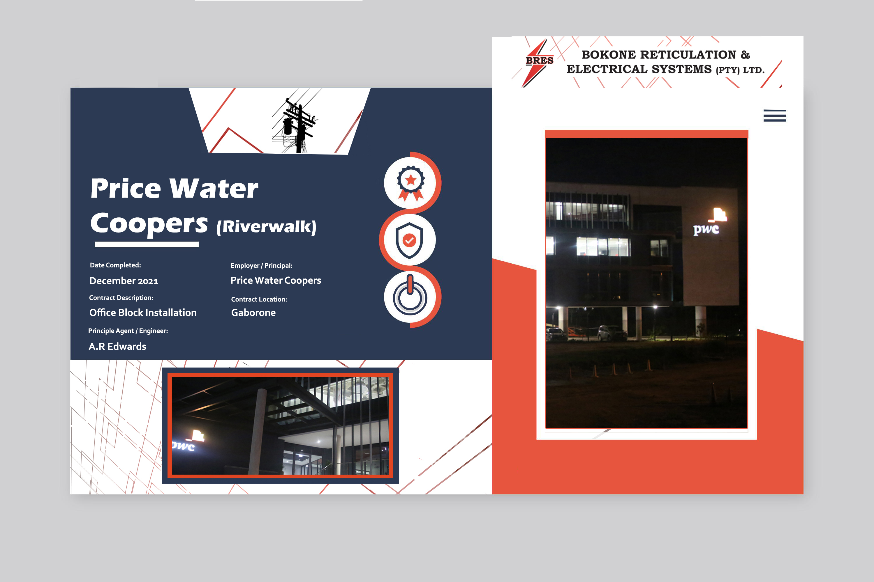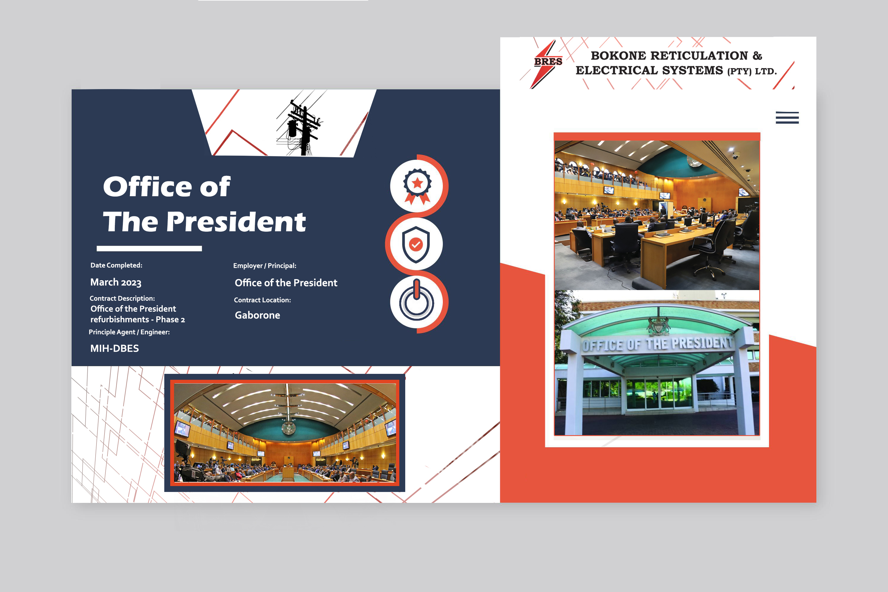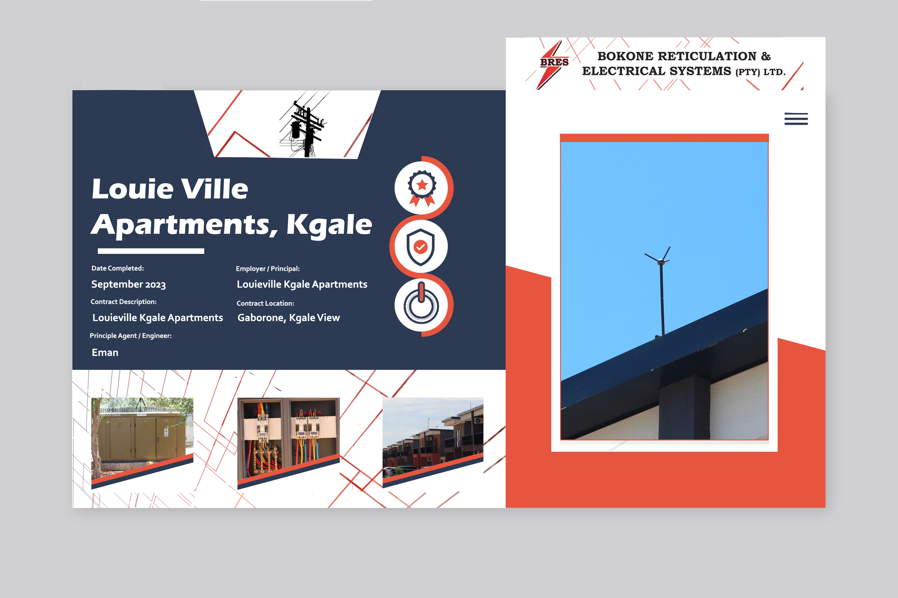 Bofinet Data Centre Prime Plaza II Louie Ville Apartments (Kgale Hill) Manoko Water Pump Station Okavango Diamond Company Gamononyane Water Pump Station Lobatse Junction Office of the President Pick n Pay (The Fields Mall) Pinnacle Office Park Sesigo Apartments ICC Flats New CRC Church Auditorium (Tlokweng) Price Water Coopers (PWC) Turn Rite Mall, Gabane Road